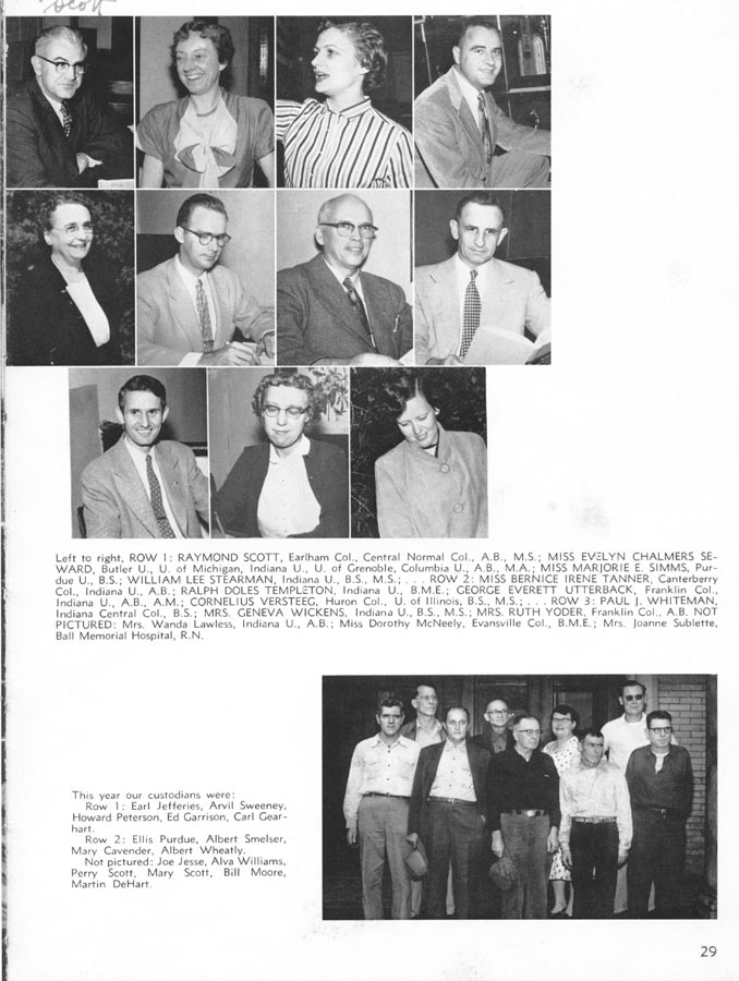 Mr. Paul J. Whiteman, Mrs. Geneva Wickens, Mrs. Ruth Yoder, our custodians, Earl